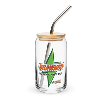 Bring a touch of the absurd to your barware collection with the Brawndo Pint Glass. Whether you’re drinking beer, soda, or even water (“like out of the toilet?”), this pint glass has got you covered. Add one (or a few) to your cart today and let the hydration hilarity ensue.