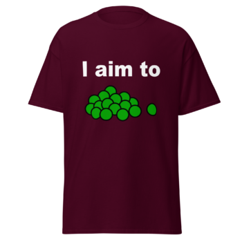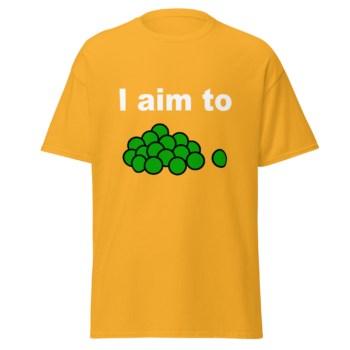 Add a touch of whimsy to your wardrobe with our ‘I Aim to Peas’ Tee Shirt. Wear your love for wordplay proudly and let your clothing reflect your unique sense of humor. Don’t miss out on the chance to own a piece of Terry’s pun-tastic wardrobe – grab your tee shirt now and let the laughter grow!