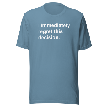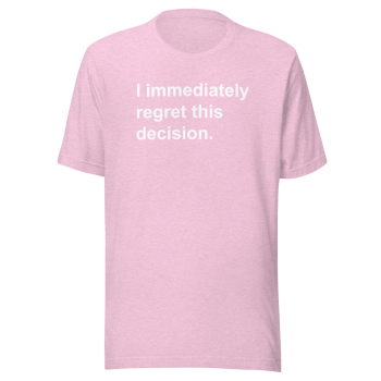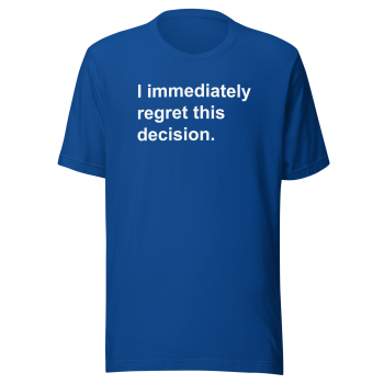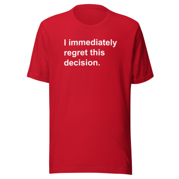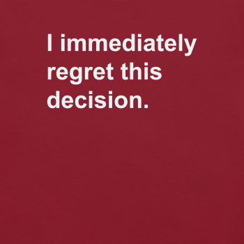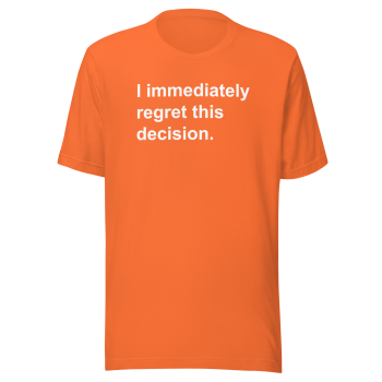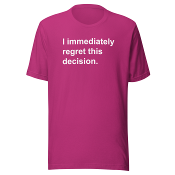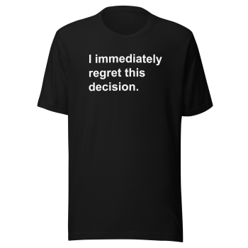 • Design: The “I Immediately Regret This Decision” graphic is professionally printed for a vibrant and durable finish.