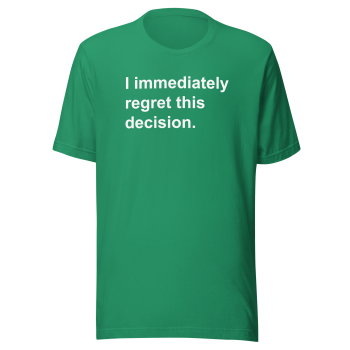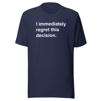 Showcase your love for the unforgettable moments of Arrested Development with our “I Immediately Regret This Decision” t-shirt! Perfect for fans of the Bluth family and their hilarious misadventures, this shirt is a fun and stylish addition to any wardrobe.