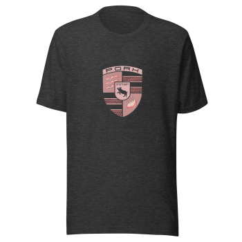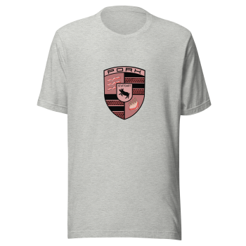 Rev up your style with a twist of humor! Our Pork Tee Shirt features a clever parody of the iconic Porsche logo, where the renowned horse has been swapped out for a playful pig and “Porsche” becomes “Pork.” This unique design is perfect for car enthusiasts and anyone with a great sense of humor.